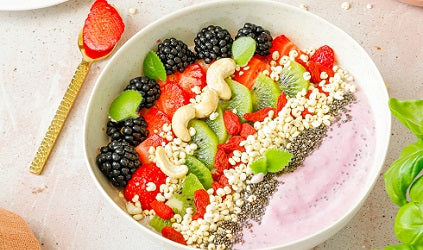 Przepis na Acai Bowl z jeżynami, truskawkami, jagodami Goji i prosem ekspandowanym Lestello