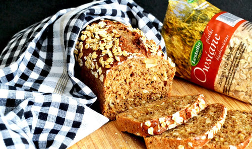 Płatki owsiane należy zmielić na mączkę w młynku do kawy. Pamiętajcie, żeby do takich czynności używać innego młynka niż ten, w którym mielicie kawę.Powstałą mąkę owsianą połączcie z dwoma szklankami mąki żytniej. Dodajcie sól, a w usypanej górcemąki zróbcie na środku dołek. Wsypcie do niego pokruszone drożdże, posypcie je cukrem a następnie wlejcie tam około pół szklanki ciepłej wody Zostawcie drożdże na około 5 minut do wyrośnięcia. Po tym czasie dolejcie do całości oliwy z oliwek i zacznijcie porządnie wyrabiać ciasto. Miejcie pod ręką szklankę z ciepłą wodą – może być potrzebna w przypadku, gdy ciasto nie będzie się chciało dobrze kleić.Z wyrobionego placka uformujcie podłużny wałek i odstawcie na godzinę w ciepłe miejsce. Całość zabezpieczcie oczywiście ściereczką. Po tym czasie przełóżcie ciasto do kwadratowej foremki wysmarowanej oliwą z oliwek. Wierzch również posmarujcie delikatnie oliwą i obsypcie całość płatkami owsianymi.Tak przygotowany chleb wstawcie na 20 minut do rozgrzanego do 195 stopni piekarnika. Następnie zmniejszcie temperaturę do 185 stopni i pieczcie ciasto przez kolejne 20 minut. Gdy czas minie,wyłączcie piekarnik i otwórzcie go, jednak nie wyjmujcie chleba. Pozwólcie mu stygnąć razem z piekarnikiem.