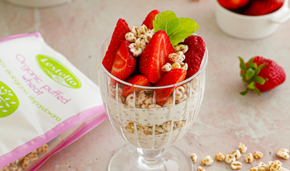 Na zdjęciu: deser z ekologiczną pszenicą ekspandowaną