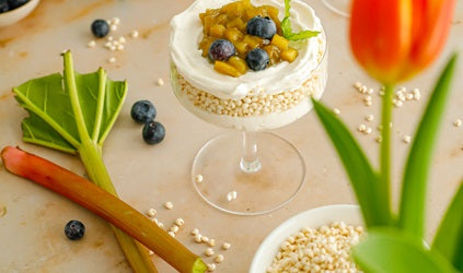 Lekkość i sezonowość na talerzu: Deser z mascarpone, prosem ekspandowanym i rabarbarem