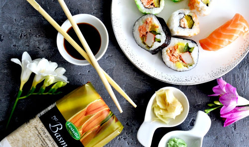 Ogórka obieramy i kroimy w paseczki. Musimy je przyciąć idealnie do rozmiaru nori. Na desce do krojenia umieszczamy matę bambusową. Na matę kładziemy płatek nori, gładką stroną do dołu.Następnie nakładamy ryż. Nie powinna to być bardzo gruba warstwa – z każdej strony zostawiamy około 2 cm wolnego miejsca. Przez środek naszego ryżu robimy pasek z pasty wasabi. Następnie nakładamy tam łososia, tuńczyka lub paluszki krabowe – wedle uznania. Możemy robić to naprzemiennie przy kolejnych porcjach. Potem kładziemy na wszystko paseczki z ogórka. Następnie za pomocą maty zwijamy całość w rulonik. Brzegi naszych nori lekko smarujemy wodą, żeby się skleiły. Sushi zwinięte w macie dociskamy tak, aby wszystkie składniki się połączyły. Następnie powstały rulonik kroimy na mniejsze krążki.