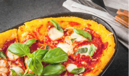 Kaszę jaglaną wsypać do garnka i zalać mlekiem, bulionem i wodą. Dodać kukrumę oraz sól do smaku. Gotować, często mieszając, aż do momentu kiedy kasza będzie miękka. Następnie przełożyć masę do blendera i zblendować. Tak przygotowaną masą wyłożyć okrągła formę do pieczenia. Na wierzch wylać, wcześniej przygotowana passatę i połozyc pokrojona w plastry mozzarellę. Wstawić do nagrzanego do 200 stopni piekarnika na około 10 – 15 minut. Przed podaniem udekorować pizzę świeżą bazylią.