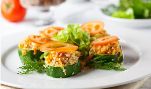 Krążki cukinii faszerowane kaszą gryczaną białą z pomidorami