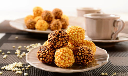 Owoce pokroić w kawałeczki. Każde oddzielnie włożyć do rondelka i zalać szklanką wody. Gotować do miękkości, na małym ogniu, aż woda wyparuje. Następnie przełożyć do blendera i zmiksować na gładką, gęstą masę. Powstałe masy będą miały konsystencję gęstych, domowych powideł. Proso podzielić na dwie części. Do każdej dodawać po łyżce przygotowaną masę i mieszać. (Jeśli powstała masa będzie zbyt rzadka dosypać prosa.) Masa musi delikatnie obkleić ziarna. Z masy formować małe kuleczki. Gotowe odłożyć na kilka godzin do lodówki.