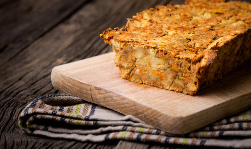 Masę przełożyć do wysmarowanej masłem i wysypanej bułką tartą foremki. Piec w nagrzanym do 200 stopni piekarniku przez około 60 minut. Po upieczeniu nie wyciągać z formy, niech w niej ostygnie, dopiero potem wyciągnąć.
