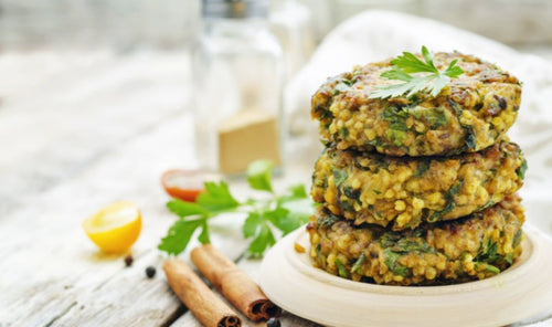 Placuszki curry z kaszą jaglaną, ciecierzycą i ziołami
