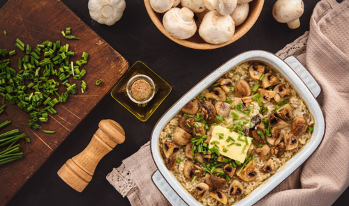 RYŻ ZAPIEKANY Z PIECZARKAMI