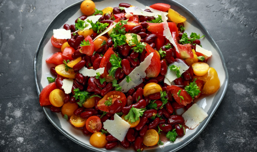 SAŁATKA Z CZERWONA FASOLĄ I KOLOROWYMI POMIDORAMI
