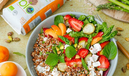 Sałatka z kaszą gryczaną, truskawkami i serem kozim - letnie odkrycie smakowe
