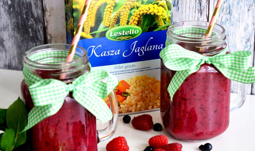 umyjcie i wrzućcie do misy blendera, dodajcie ostudzoną kaszę jaglaną i zmiksujcie wszystkie składniki na jednolitą masę. Następnie przelejcie ją do ulubionej szklanki bądź kubka – Wasze pyszne i zdrowe