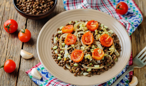 SOCZEWICA Z CEBULĄ I POMIDORAMI