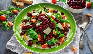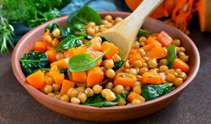 Sałatka z marchewką, młodym szpinakiem i ciecierzycą