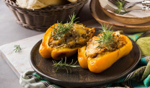 Żółta papryka faszerowana kaszą jęczmienną z wołowiną
