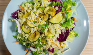 Lekka sałatka z kaszy jęczmiennej i cukinii