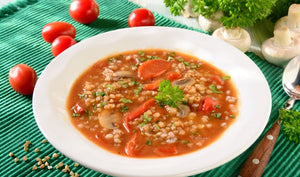 SAŁATKA Z ZIELONEJ SOCZEWICY, PIECZONEJ PAPRYKI I SUSZONYCH POMIDORÓW