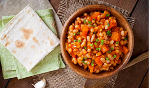 Makaron z sosem pomidorowym, fasolą i parmezanem