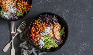 Grilowany kurczak z pieczoną ciecierzyca i warzywami