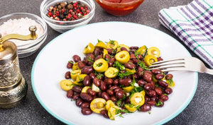 Sałatka z czerwoną fasolą, oliwkami i koperkiem