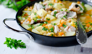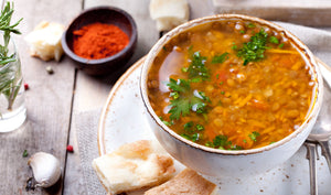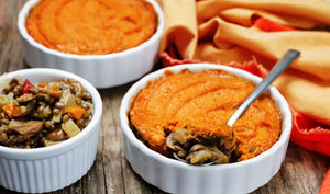 Grzyby z zieloną soczewicą zapiekane pod pierzynką z batatów