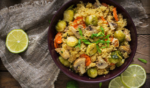 Kuskus z brukselką, grzybami, marchewką i przyprawami