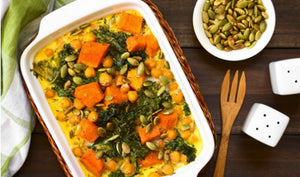 Zapiekanka z dynią, jarmużem i ciecierzycą