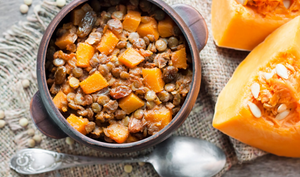 GULASZ NA SŁODKO Z ZIELONA SOCZEWICA I DYNIĄ