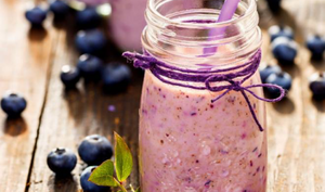 SMOOTHIE Z JAGODAMI I PŁATKAMI OWSIANYMI NA MAŚLANCE