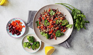 Sałatka z czerwoną fasolą, czerwona papryką, brokułami i quinoa