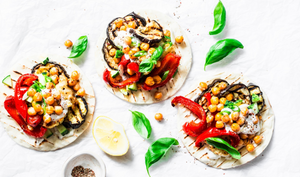 Wrapy z pieczoną ciecierzycą, bakłażanem i papryką