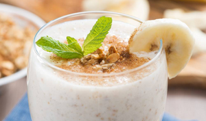 Smoothie bananowe z płatkami owsianymi i migdałami
