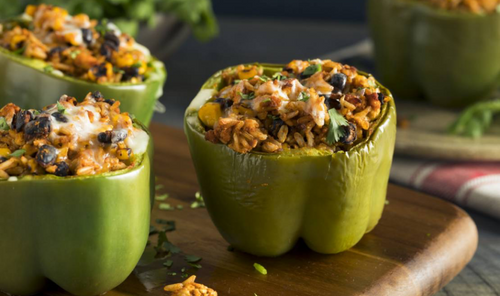 ZIELONA PAPRYKA FASZEROWANA RYŻEM CURRY Z CZERWONĄ FASOLĄ