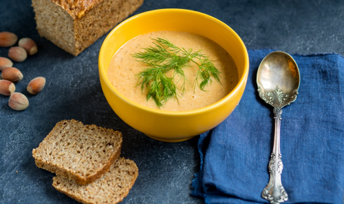 ZUPA KREM Z CZERWONEJ SOCZEWICY Z ORZECHAMI LASKOWYMI
