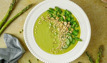 Zupa krem z zielonego groszku i szparagów z prosem ekspandowanym
